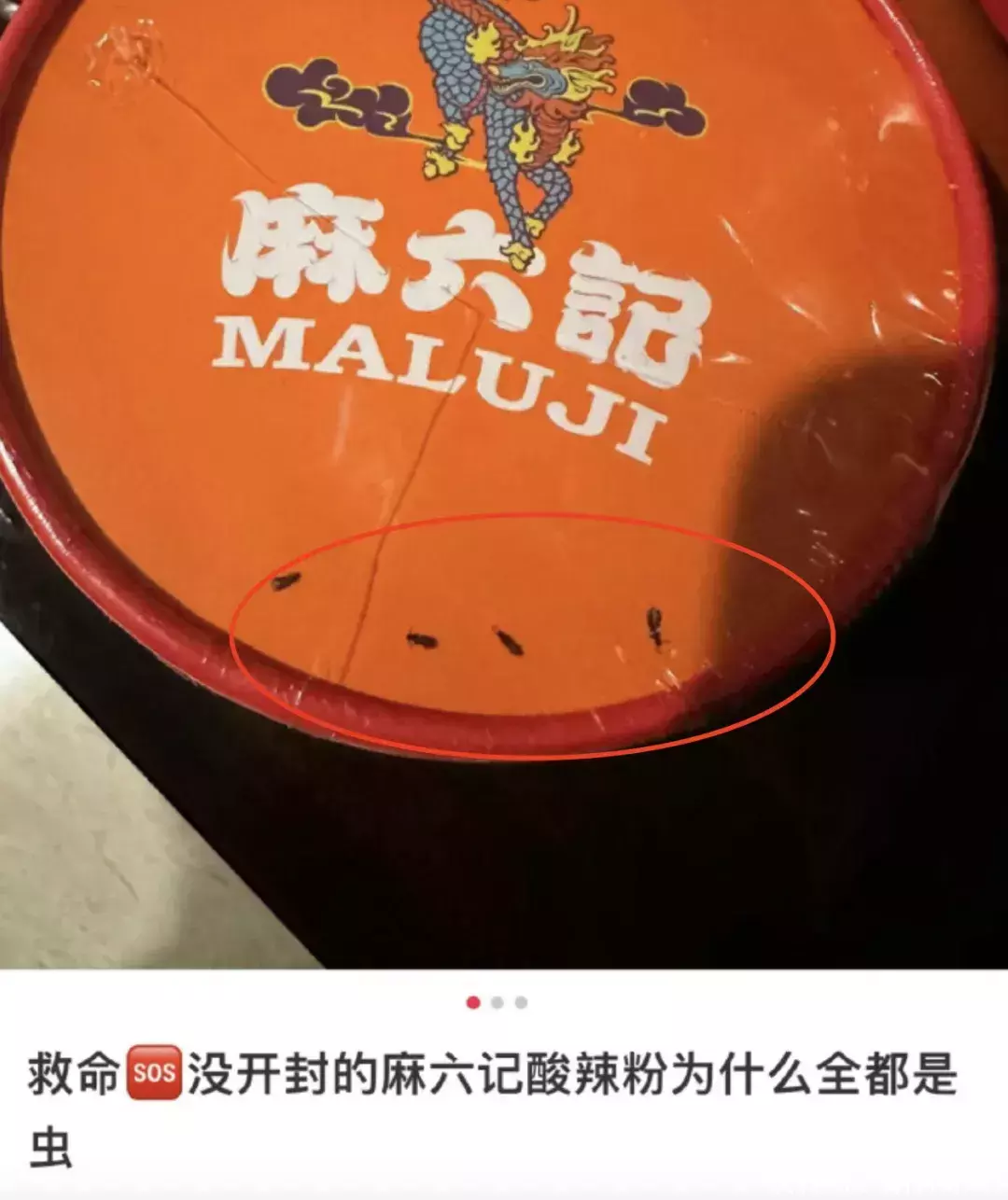 还有消费者曾表示,买来的麻六记还没开封,就看到塑封袋下面全是小飞虫,简直不要太离谱。