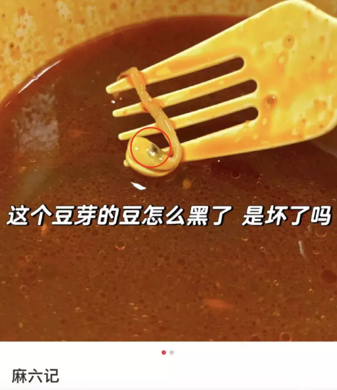 其次,麻六记酸辣粉也不是第一次被曝有质量问题,此前有消费者发帖称购买了麻六记酸辣粉,发现配菜豆芽的豆里有一个黑黑的东西,细看很像苍蝇。