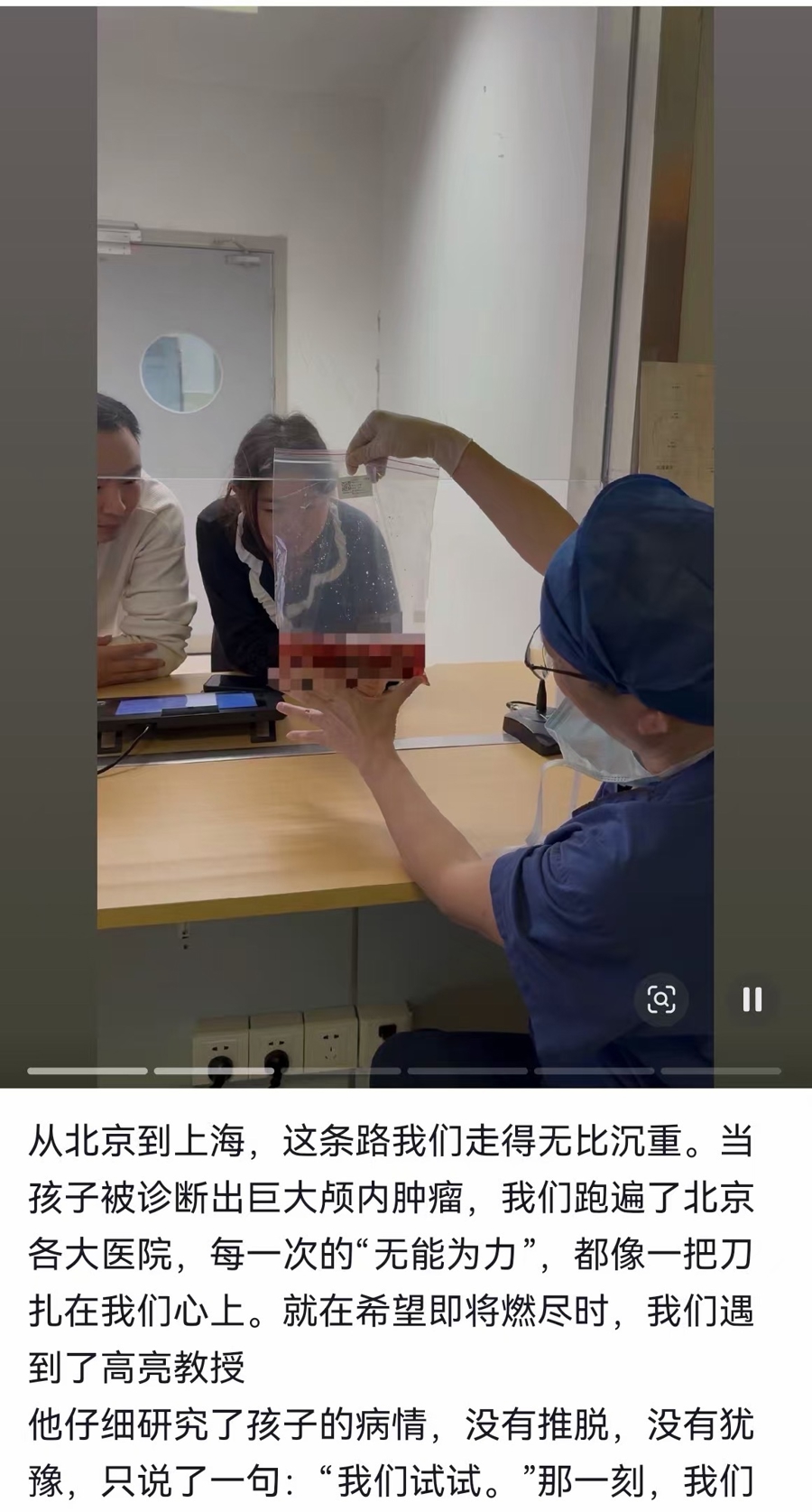 绝境之中,神经外科领域知名专家、上海冬雷脑科医院高亮教授接过了这根“生命接力棒”。看着病床上瘦小无力的小暄暄,高亮教授深知,常规成人神经外科平台,根本无法适配小儿麻醉的精准调控、术中生命支持的精细操作,以及术后重症监护的特殊需求。当即,他做出关键决策:联动上海市儿童医院,搭建跨院协同救治体系,以冬雷脑科团队在复杂脑肿瘤显微切除上的硬核技术,搭配上海市儿童医院在小儿麻醉、儿童重症、围手术期儿科精细化管理的专属优势,为小暄暄筑起“专科攻坚+儿科护航”的全链条生命防线。